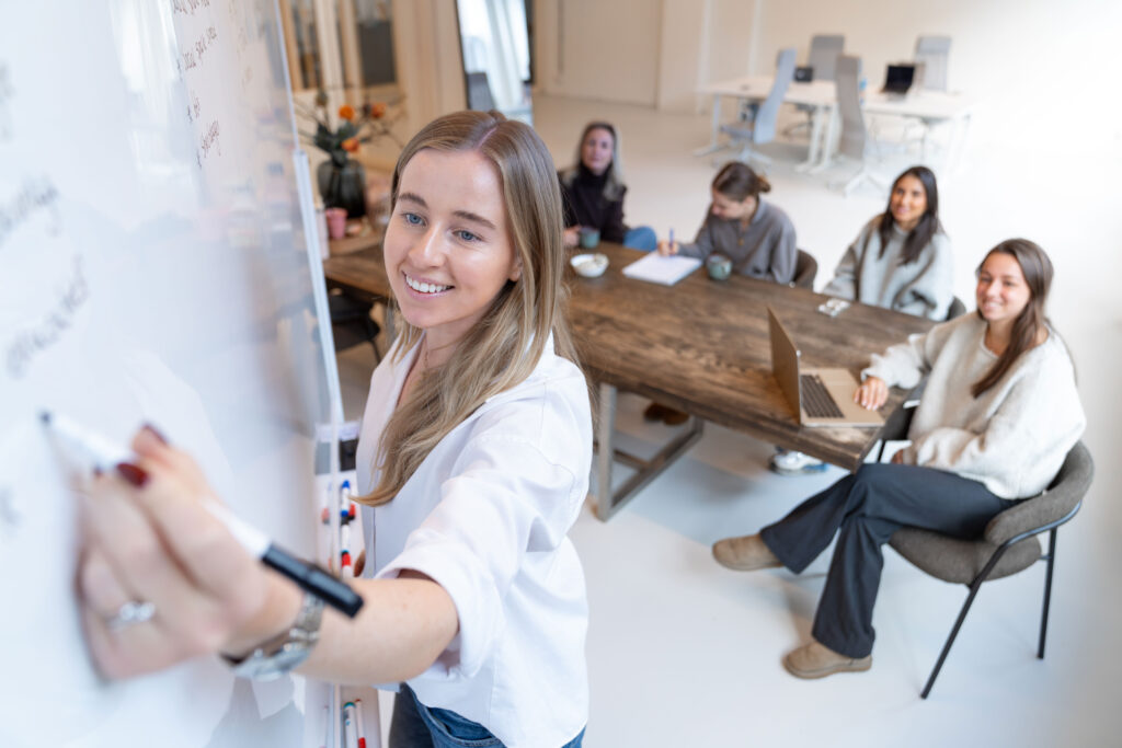 Wat op haar vision board voor 2026 staat, deelt ze nu nog niet. Maar op dat van 2025 stond onder andere een eigen kantoor en team, klantenuitbreiding, een omzettarget en spreken voor grotere groepen. ‘Ik heb hier naartoe gewerkt en… ik heb mijn doelen voor 95 procent kunnen afvinken. Dus het werkt!’