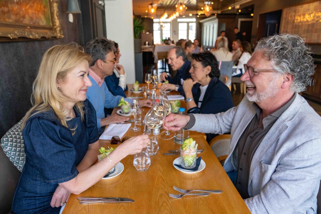 Daarna hebben we binnen heerlijk geluncht met elkaar, om na afloop weer naar buiten te gaan. ‘De tuin van het Bilderberg Parkhotel Rotterdam blijft een heerlijke plek, net als het restaurant, waar we ons telkens weer welkom voelen. Wij komen hier graag, ook regelmatig in een kleinere setting’, zegt Jan Dirk.